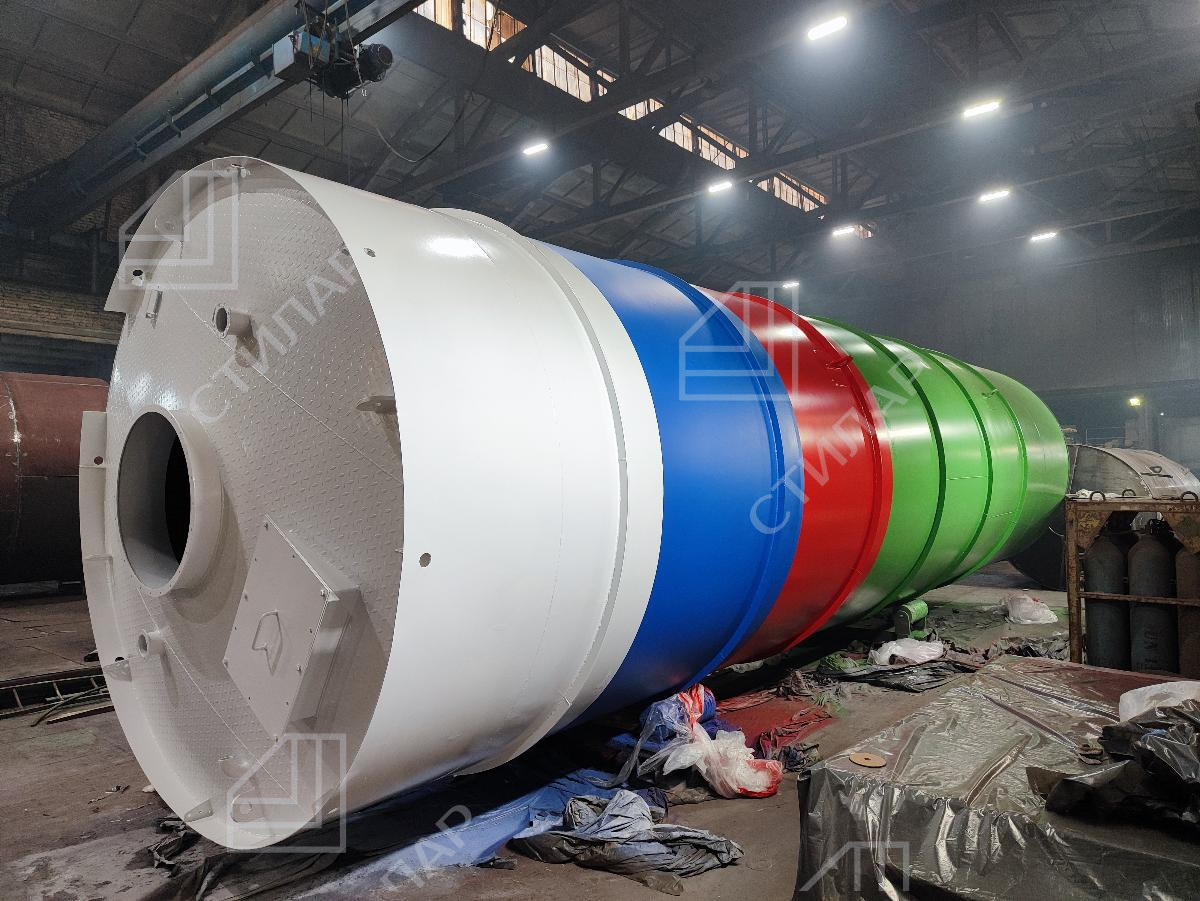 В марте 2026 года мы реализовали проект по изготовлению силоса башенного типа для хранения цемента. Данный силос с объемом 60+50 кубических метров был изготовлен за 18 дней.